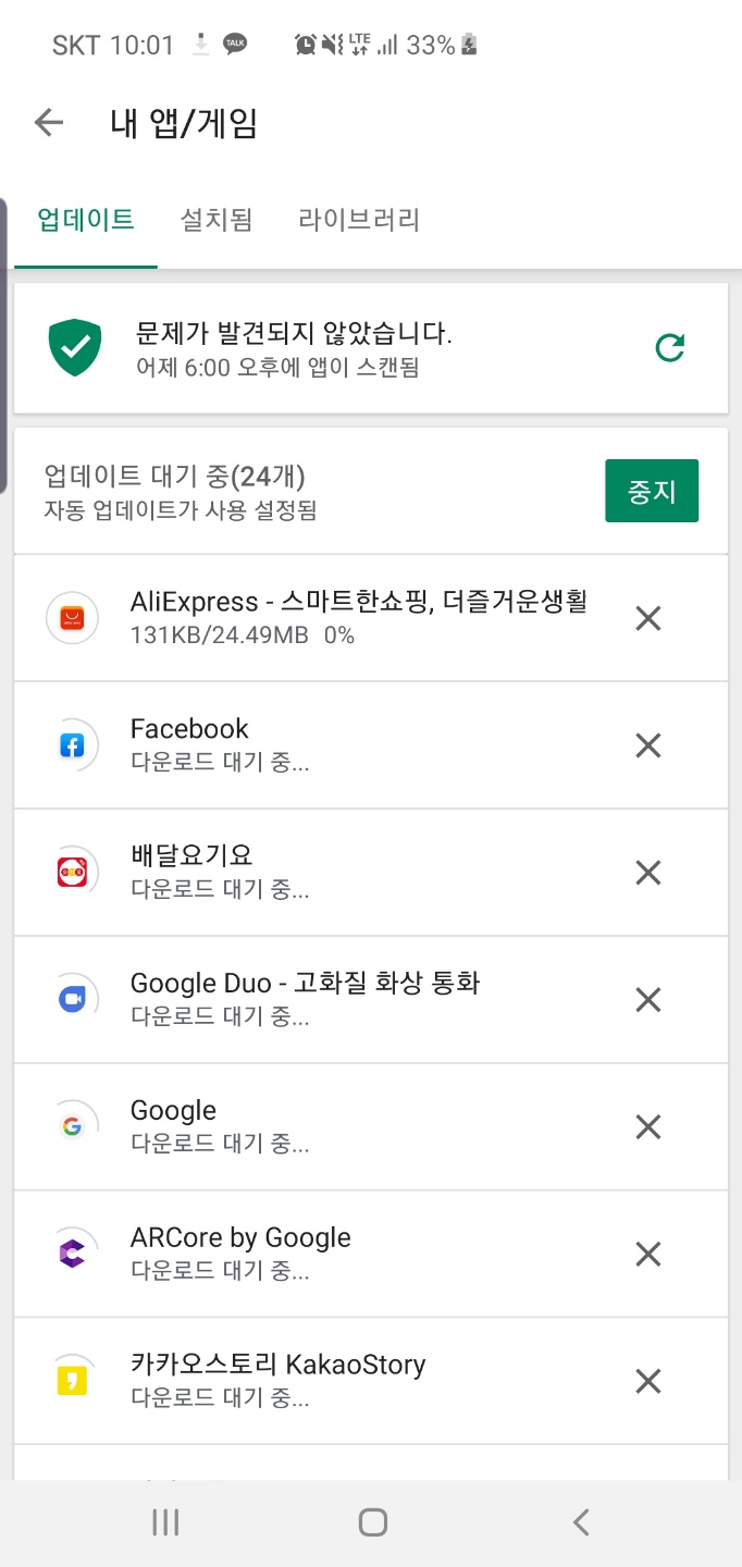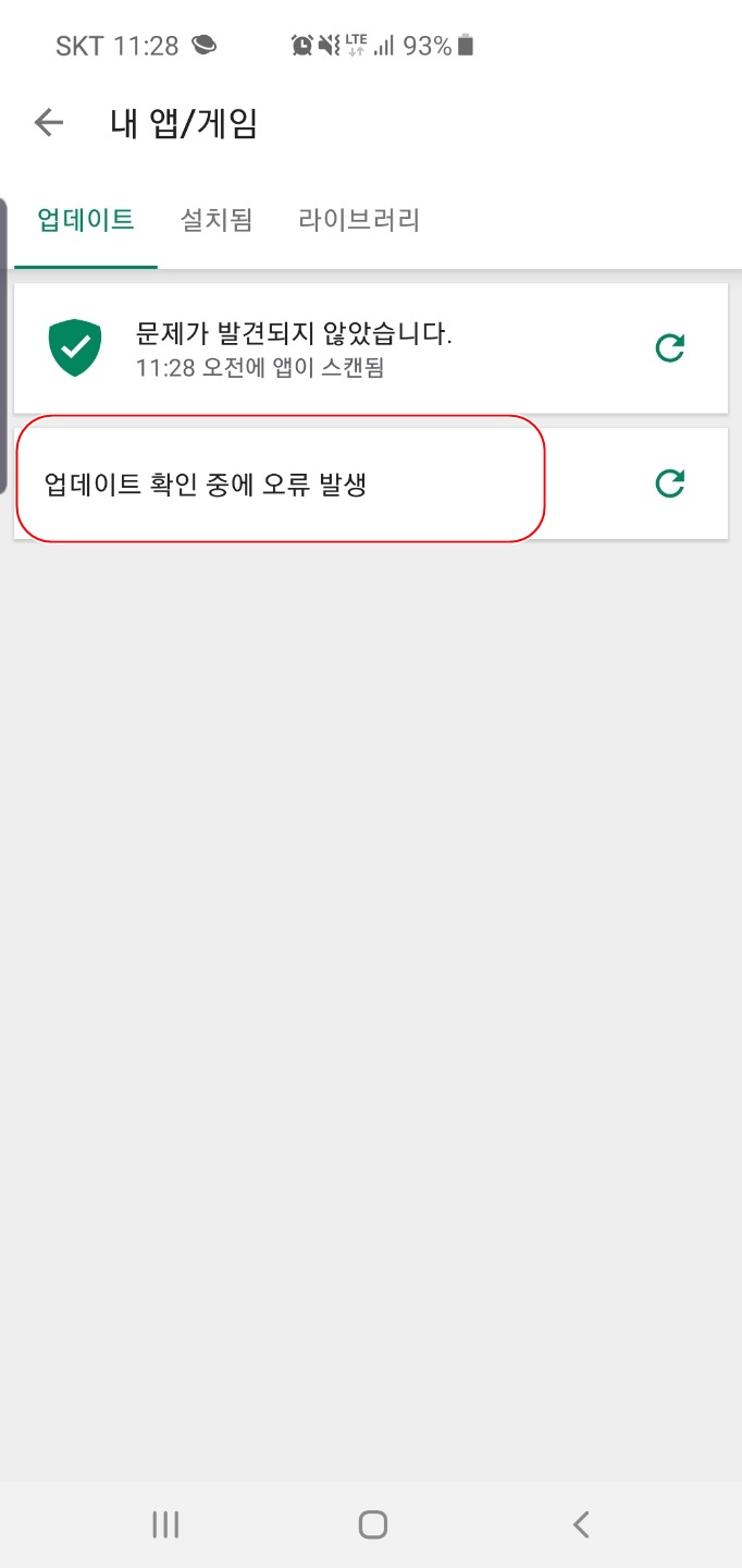 구글 플레이를 잘 사용중에 갑자기 업데이트가 잘 되지 않는 상황이 발생했습니다.