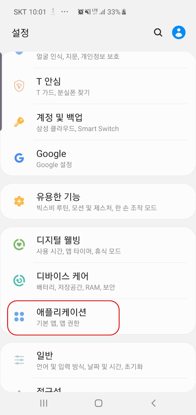 먼저 스마트폰의 설정에 들어간 다음 -> 어플리케이션으로 들어갑니다.