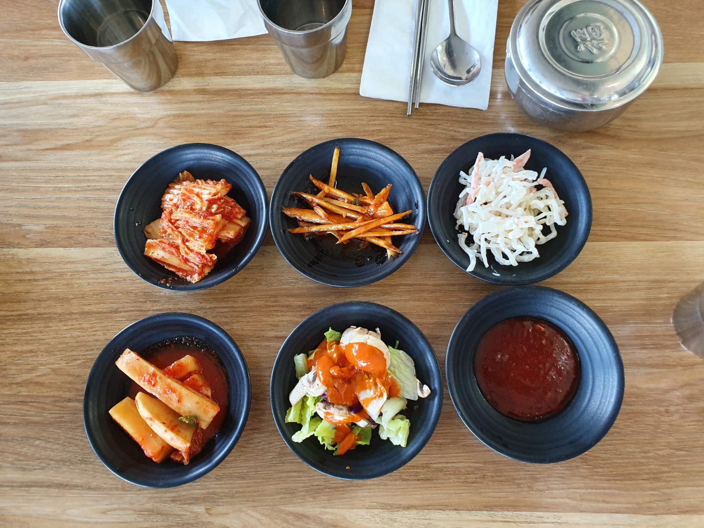 기본 반찬이 나오고, 이건 역시 한국식당만 나오는 듯 ㅎㅎ