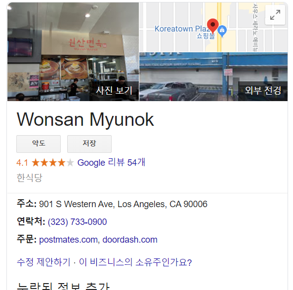 그래도 미국에서 한국의 맛이 그립다면 한번 방문해보시길!