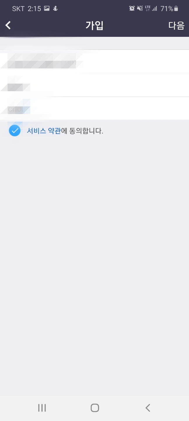 앱을 다운로드 받은후 가입을 눌러서 가입을 진행합니다.