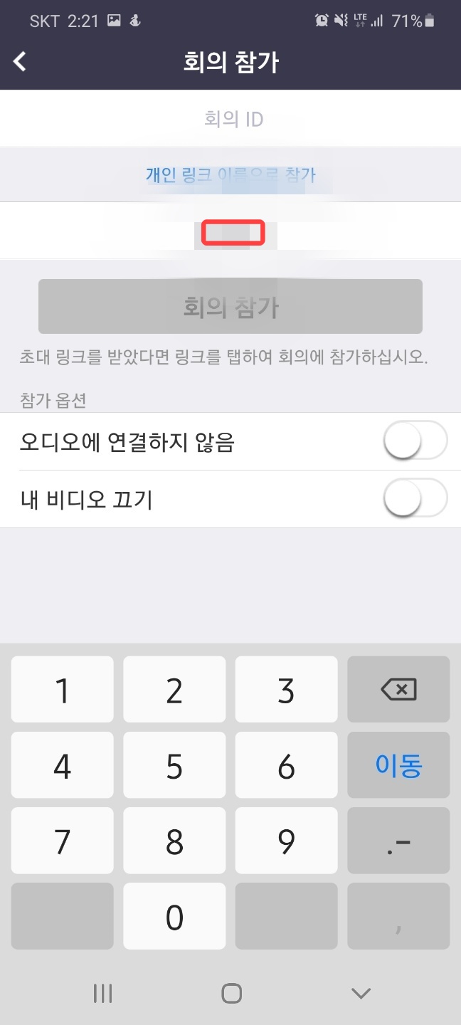 이후에는 처음 화면에서 회의 참가 또는 초대를 눌러서 회의에 링크를 보내주고