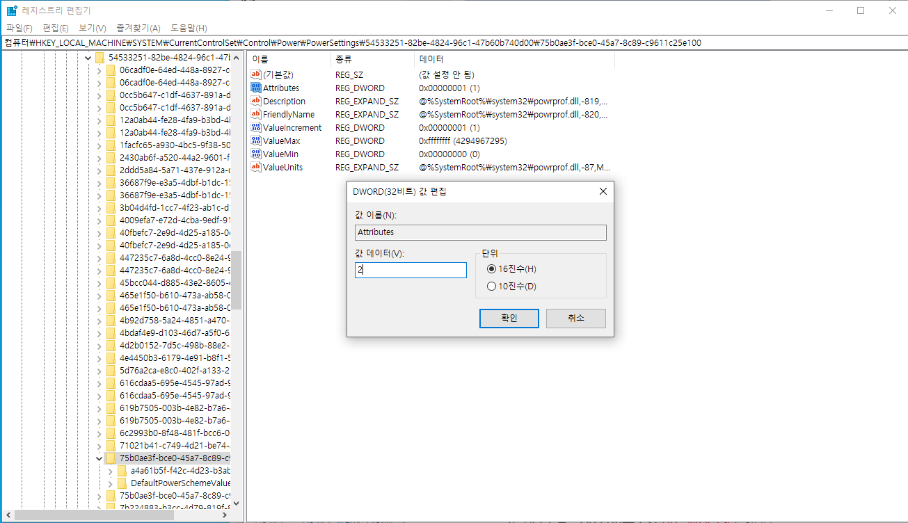 이 곳에서 Attributes 값을 1-> 2로 변경해 줍니다.