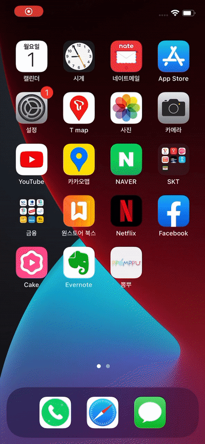 검색창을 가는 방법은 화면을 아래에서 위로 올리면 되는데요.