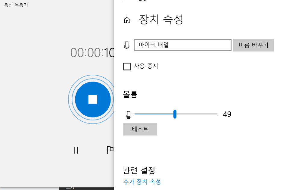 그리고 장치 속성에 들어가셔서, 볼륨을 증가시키면 됩니다.