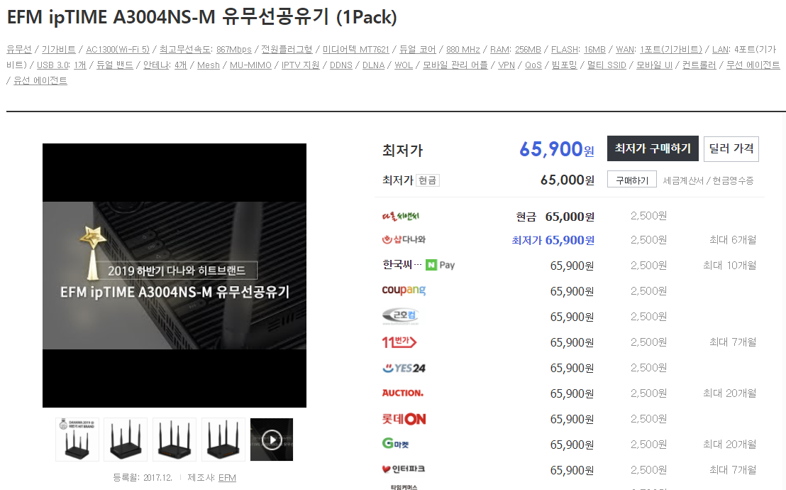 집에 기가 인터넷을 사용하지 않는다면, 메시가 지원되는 가장 저렴한 iptime A3004ns-m 모델이나