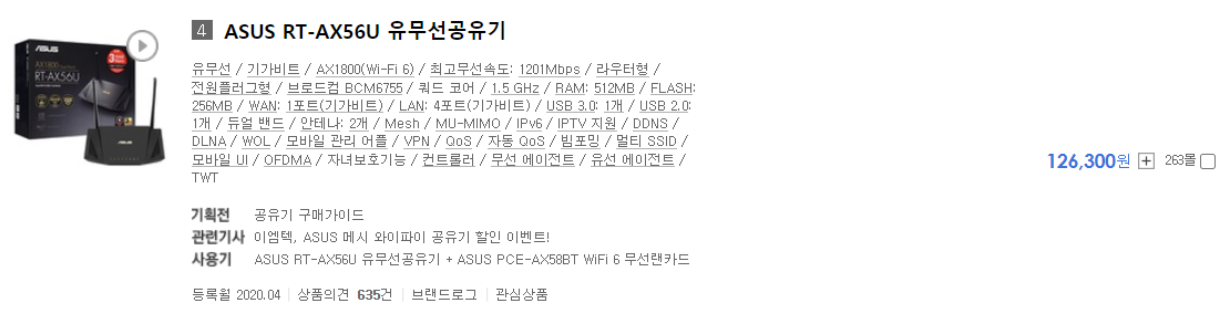 대중적인 인기를 가지는 Asus RT-AX56U이나