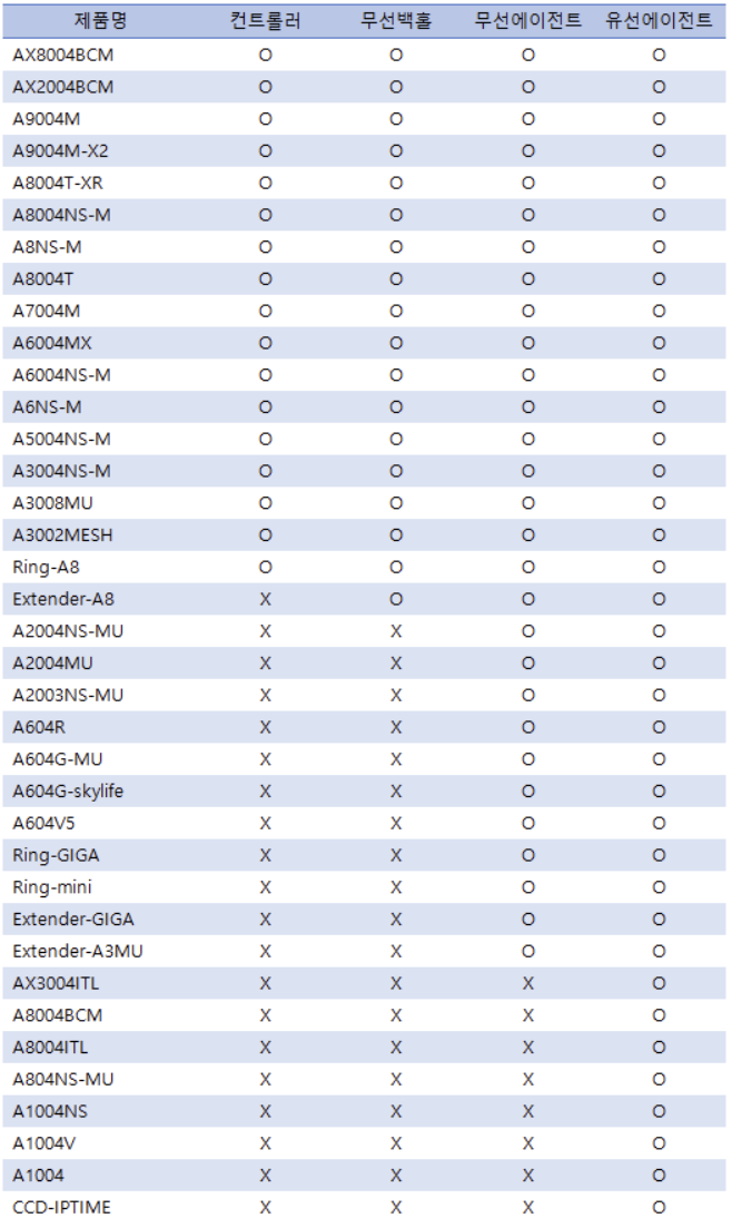 국내에서 많이 쓰는 IPTime의 경우 컨트롤러가 되는 17개 제품을 사용하고
