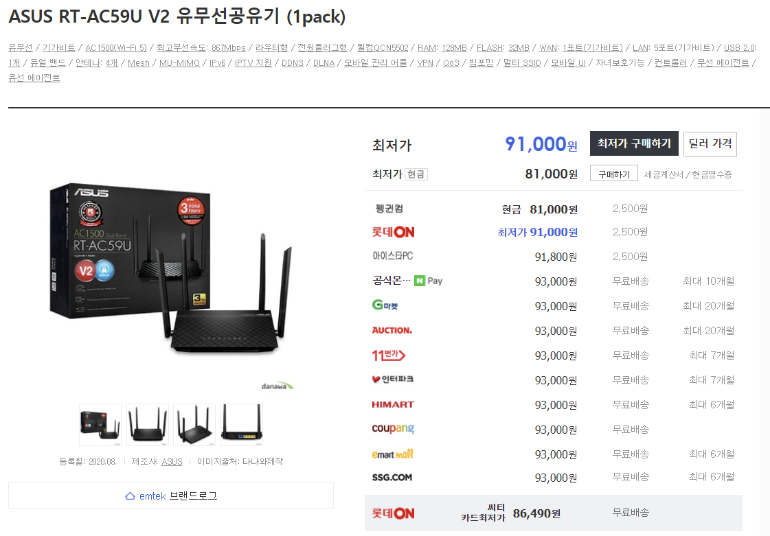ASUS RT-AC59U V2 모델 역시 메시가 지원되므로 추천드립니다.