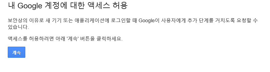먼저 보안 수준이 낮은 앱의 액세스를 허용해주시고
