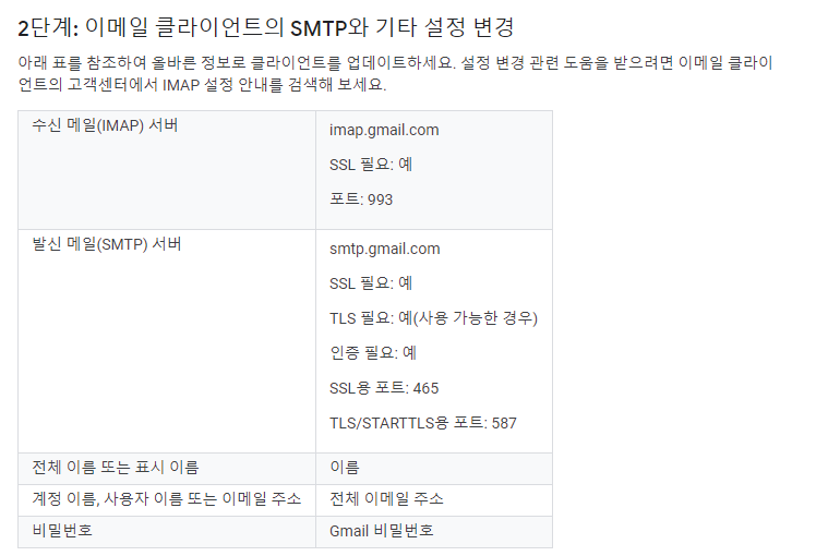 그래서 제가 사용하는 Gmail을 연동하고자 한다면, 아래처럼 아이디와 패스워드를 넣으면 됩니다.