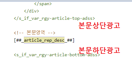 이렇게 상단 광고를 넣는다면 이런식으로 수동으로 넣으시면 됩니다.
