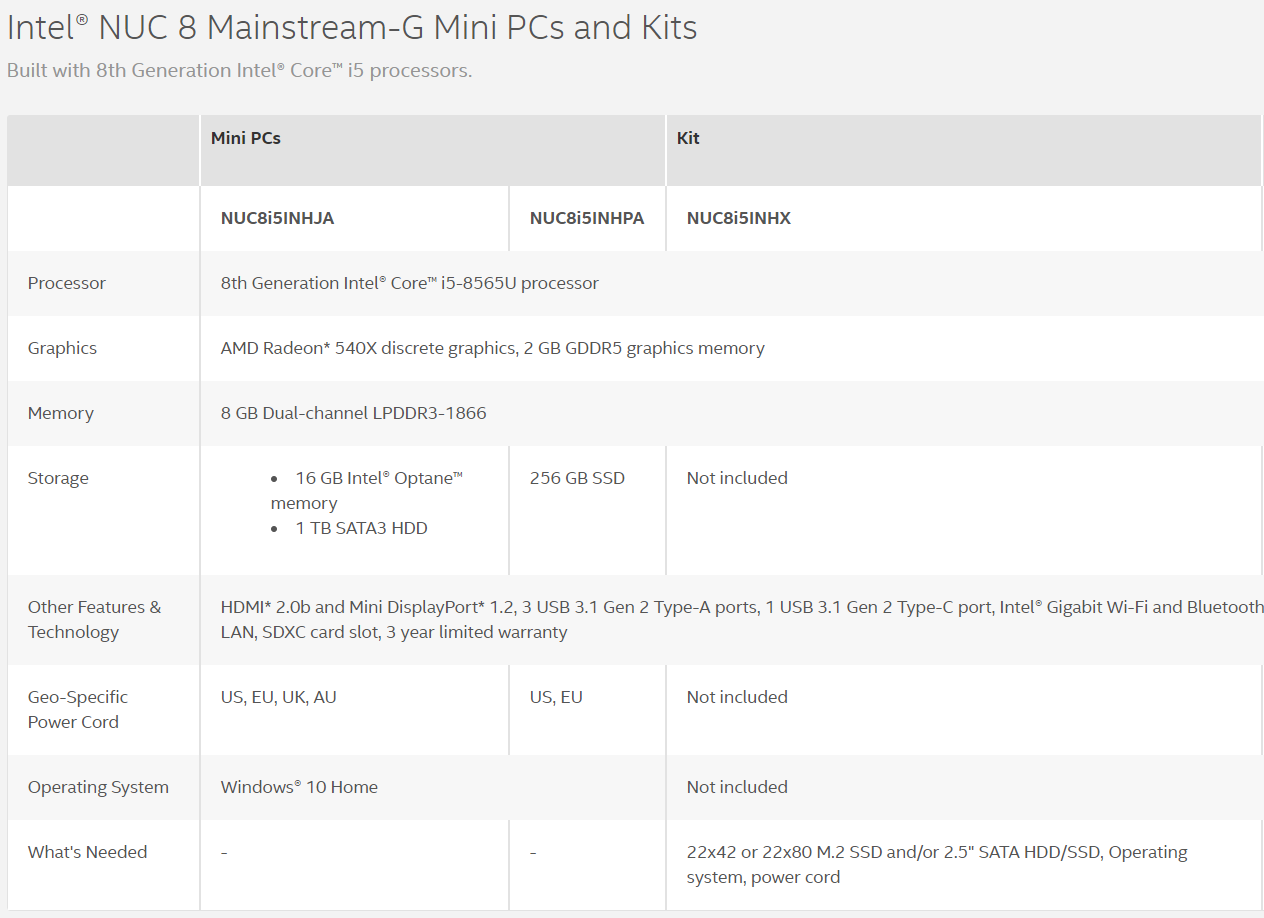 Intel® NUC 8 Mainstream-G Mini PCs and Kits Brief