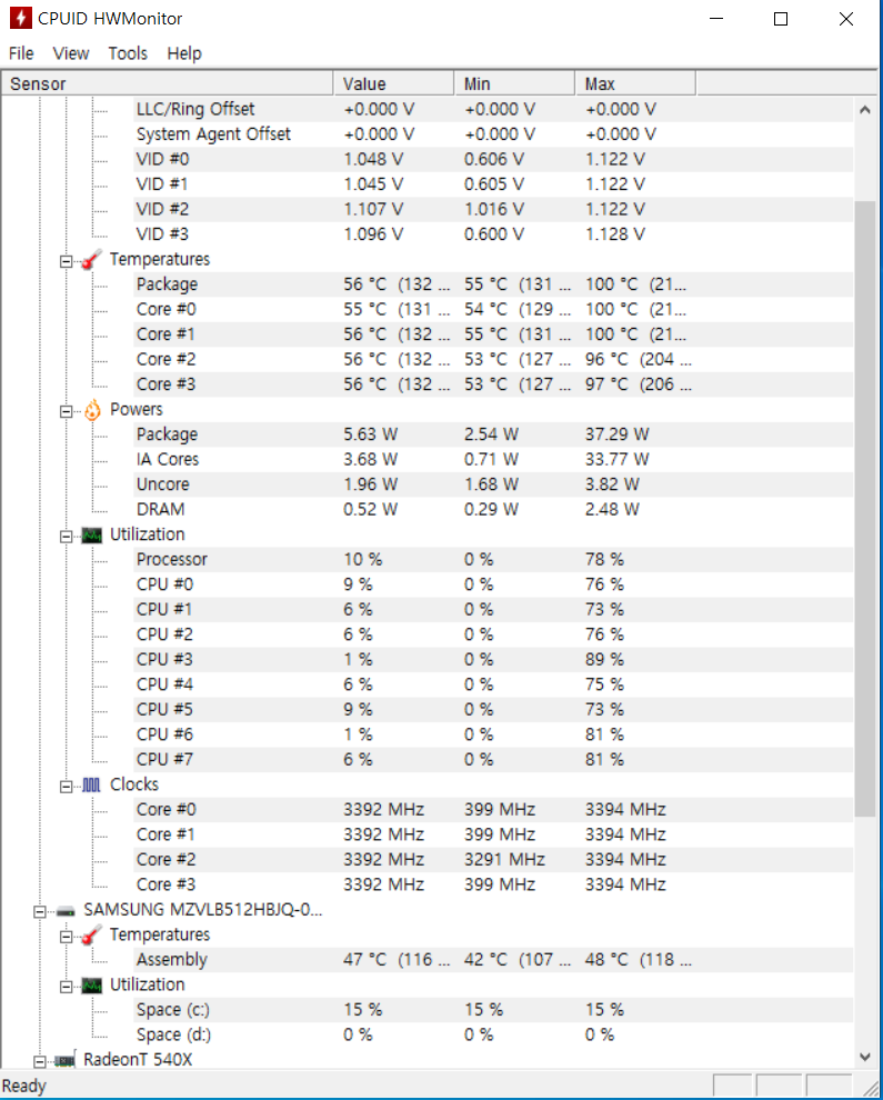 풀옵을 할경우 아래처럼 100도까지 올라갑니다. 클럭은 제가 3400으로 낮춰논 상황입니다.