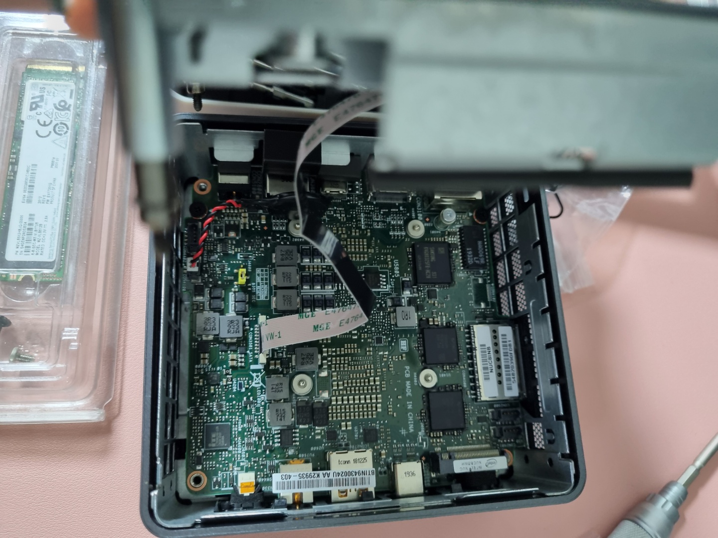 Sata 케이블을 조심해서 오픈하시고, 이후 m2 슬롯에 SSD를 장착합니다.