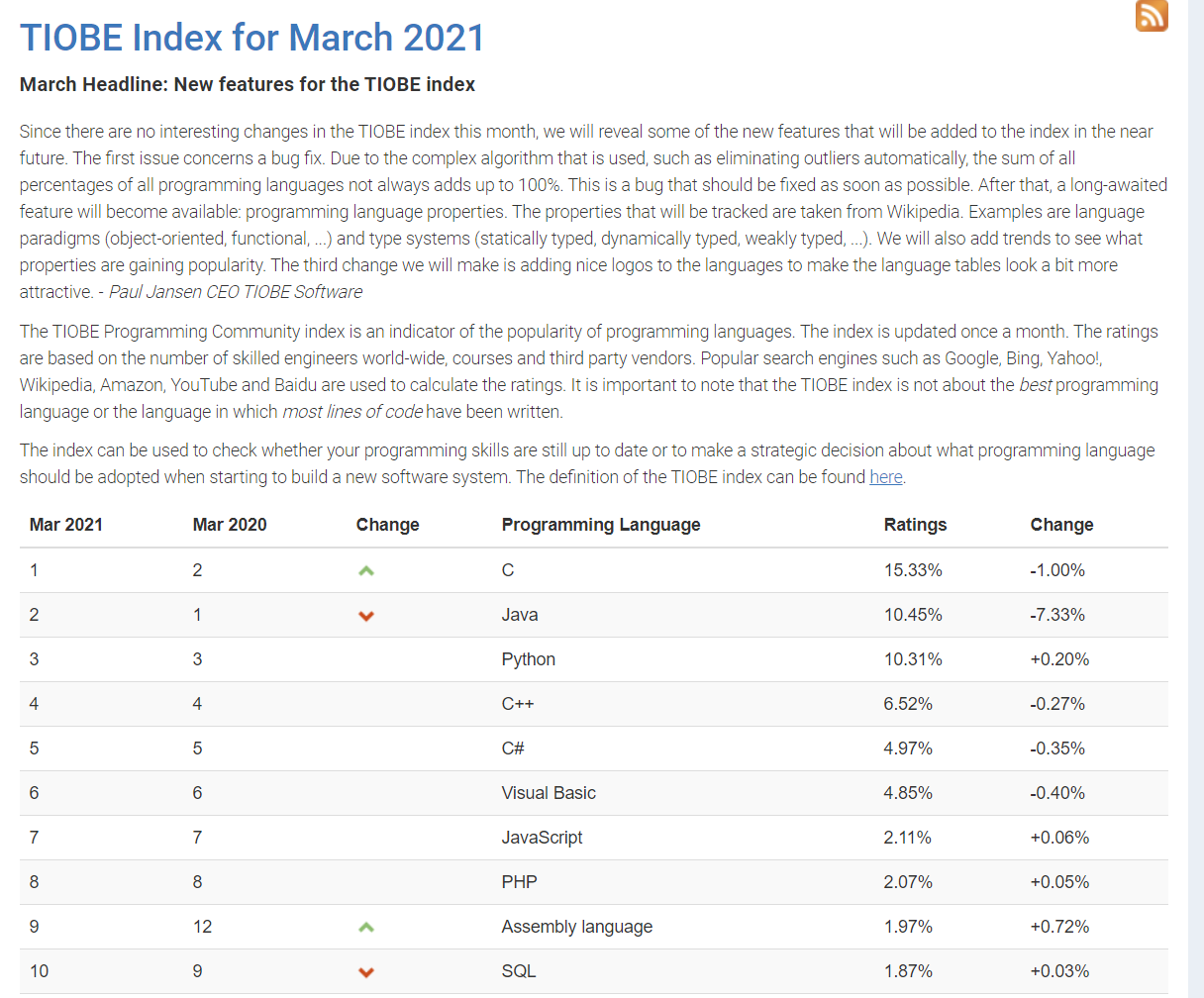 Tiobe Index를 보더라도 자바를 턱밑까지 추격해서 2위 자리를 노리고 있습니다.