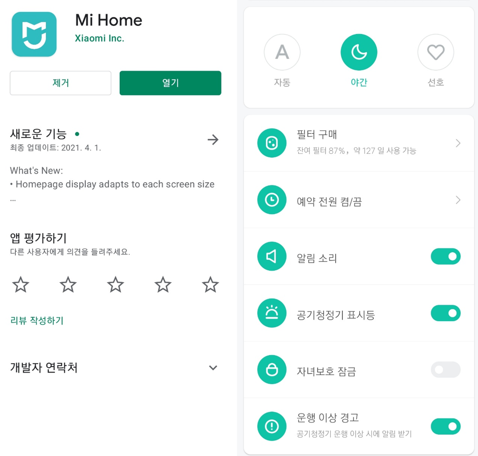 그리고 기본적으로 와이파이를 지원하기 때문에, 설치후에 Mihome을 설치하시고 각종 기능을 조절할 수 있습니다.