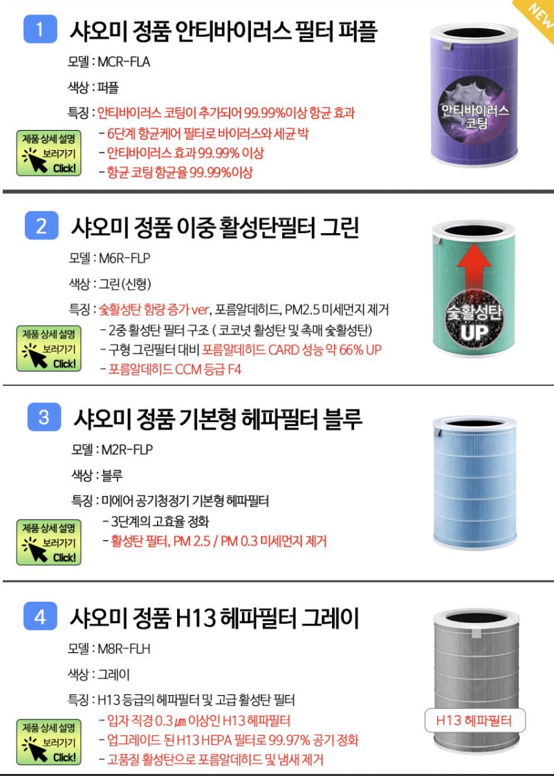 그리고 현재 샤오미 공기청정기는 필터를 모두 같이 사용이 가능한데요.