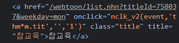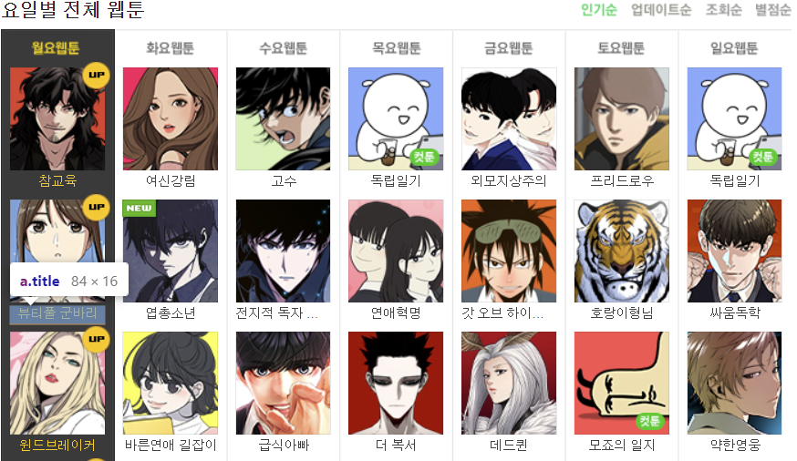 저는 요일별 웹툰 리스트를 크롤링 해보려고 하는데요.