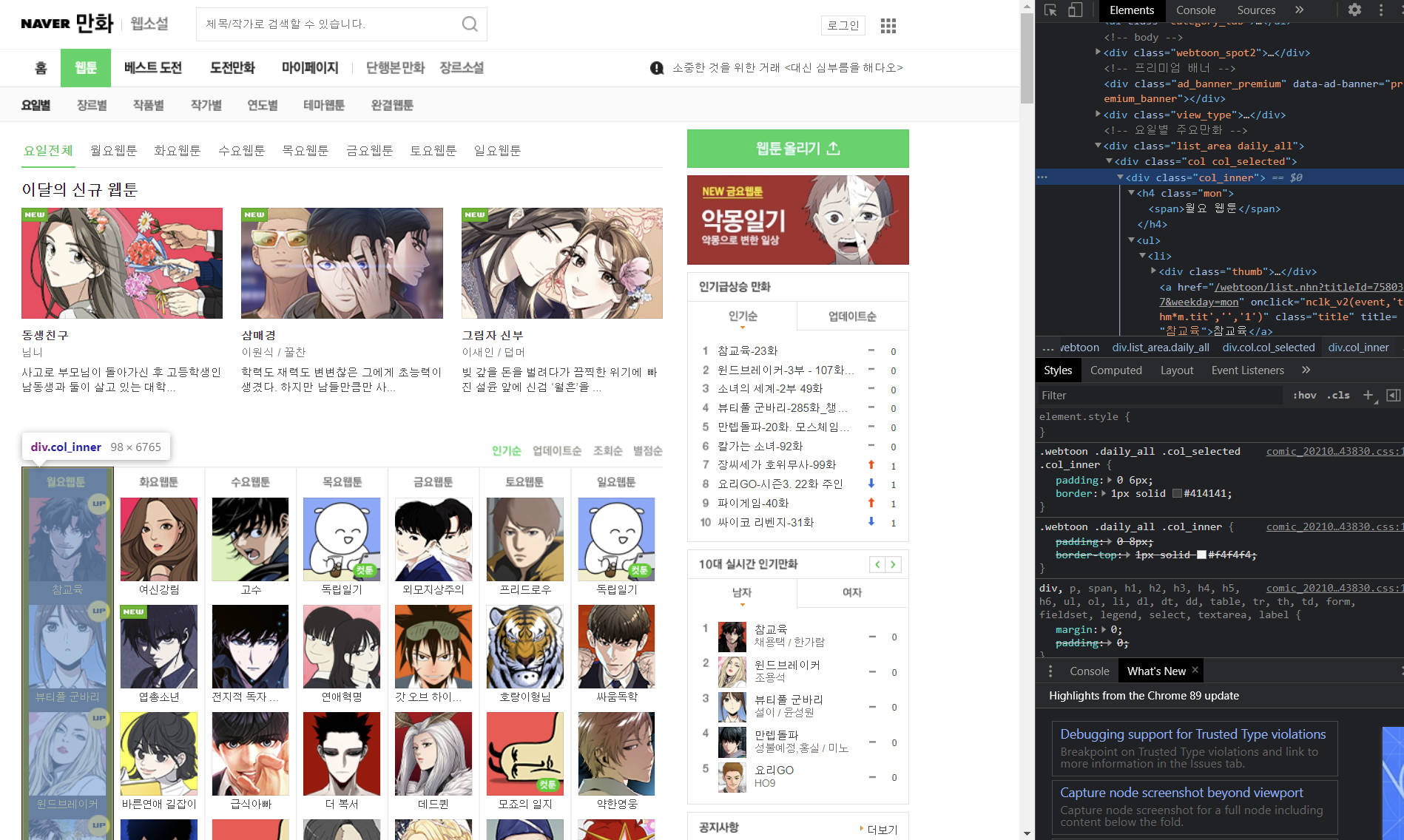 먼저 오늘 크롤링하려고 하는 네이버 웹툰 페이지를 확인해봅니다.