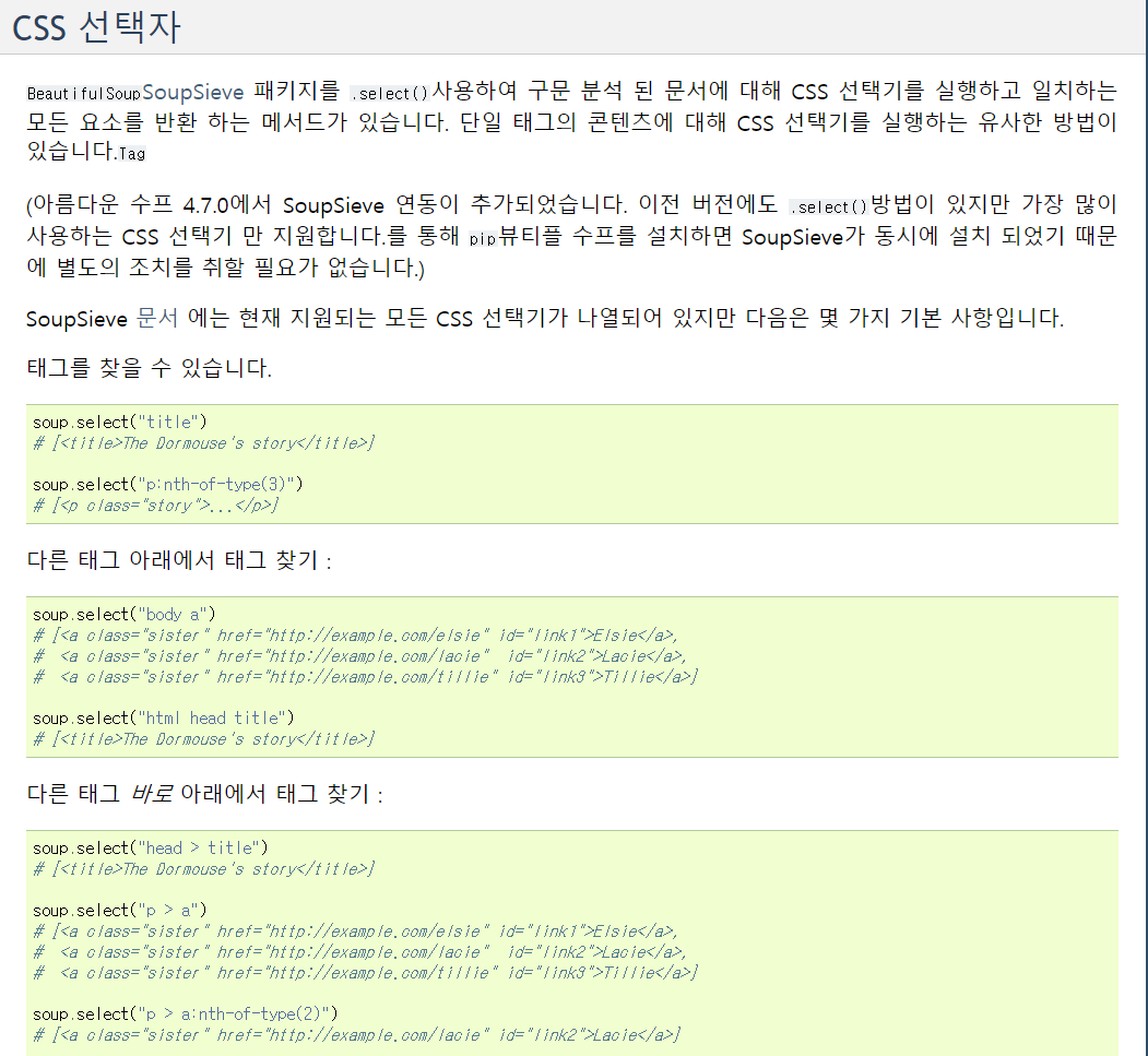 BeautifulSoup, find와 select 를 사용한 웹 크롤링