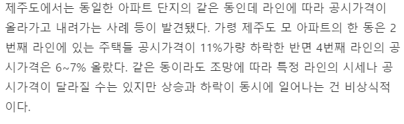 한 아파트 내에서 라인에 따라서 공시가격이 한쪽은 올라가고 한쪽은 내려가는 양상이 나왔습니다.