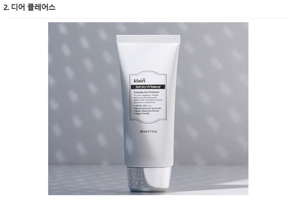 디어 클레어스의 '소프트 에어리 UV 에센스'역시 문제가 있었구요.