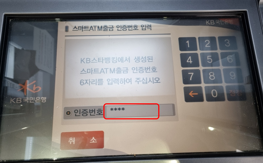 그리고 이 6자리 인증번호를 ATM기에 그대로 입력해주시면 출금이 가능합니다.