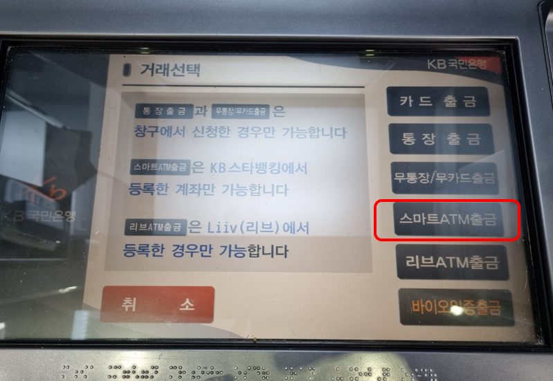 이런 기능을 스마트ATM이라고 합니다. 제가 포스팅한 국민은행 외에도 다양한 은행에서 지원하고 있으니