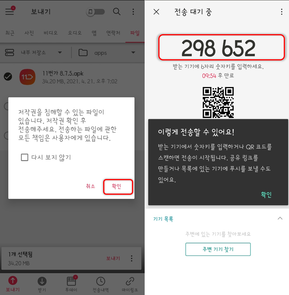 간단히 SendAnywhere로 두 폰간에 이동을 시킬수도 있습니다.