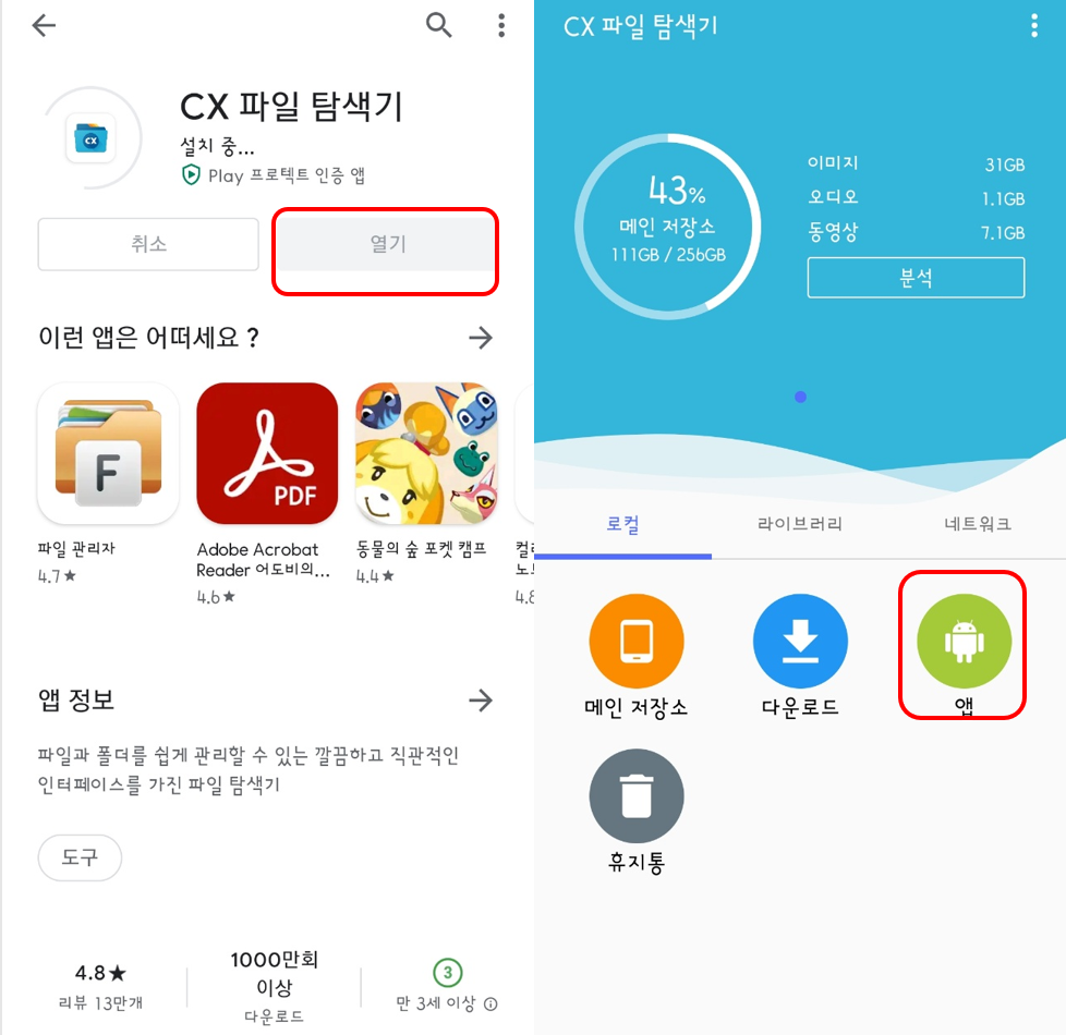 그중에서 사용자가 많은 CX File 탐색기로 설명 드리겠습니다.