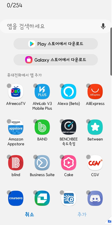 플레이스토어, 갤럭시 스토어에서 새로 받거나, 기존에 설치되어 있는 앱을 추가 설치할수도 있습니다.