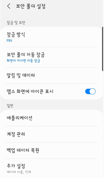 이후 최초 PIN번호와 함께 보안폴더 설정을 간단히 하시구요.