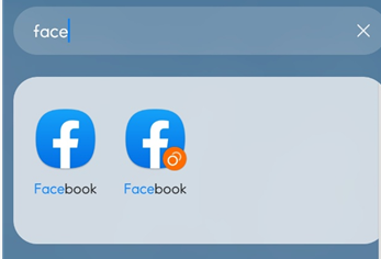 그리고 설치가 완료되면 아래처럼 페이스북 아이콘 아래에 듀얼앱이라는 주황색표시가 추가됩니다.