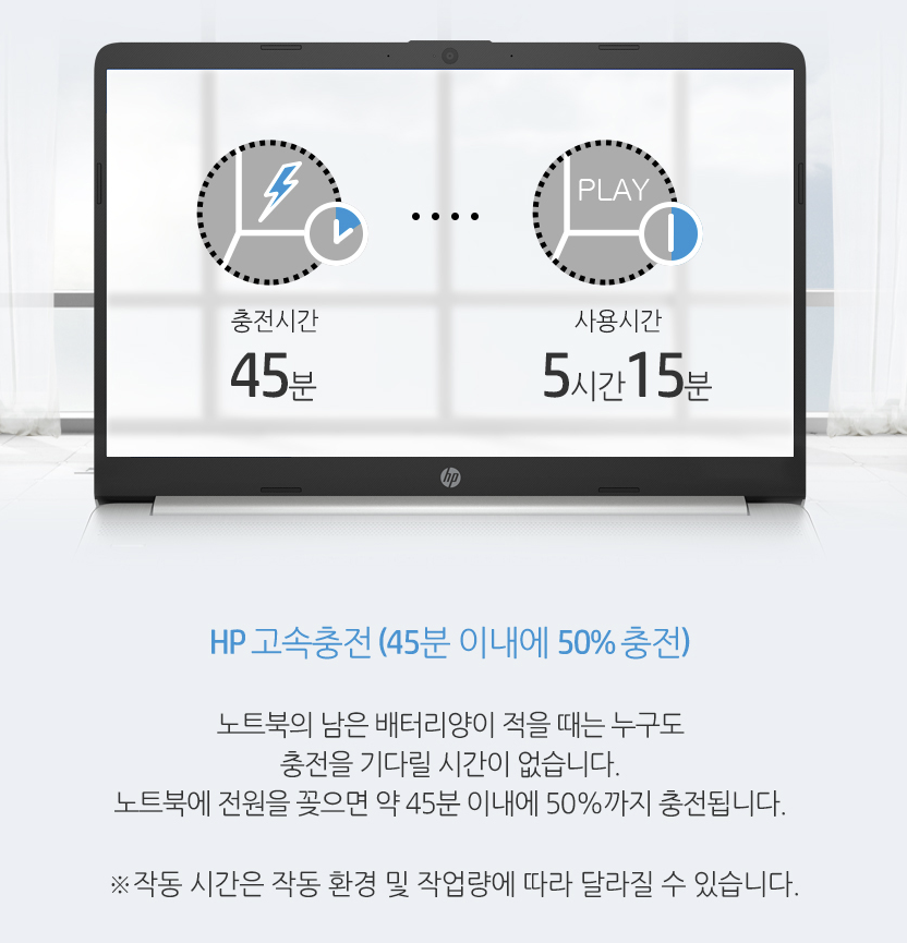 HP고속충전을 통해서 45분 만에 50%충전이 가능하며, 최대 5시간 동안 사용 가능하다고 합니다.