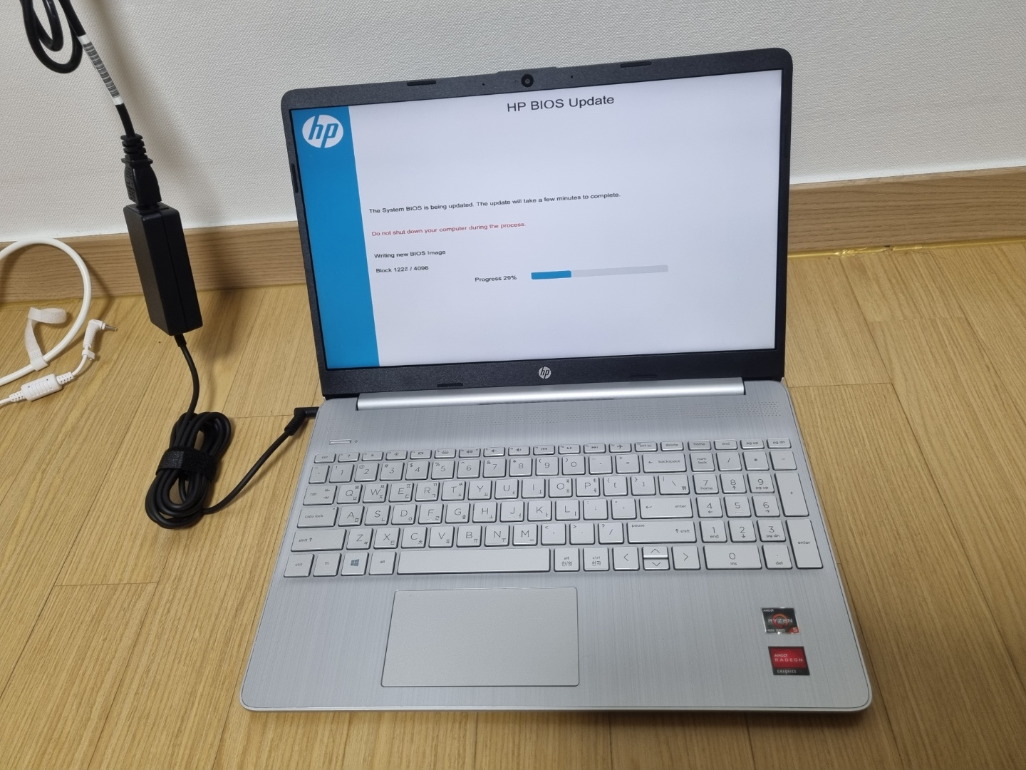 모니터 각도는 약 130도정도까지만 젖혀지고요. 바이오스 업데이트를 가장 먼저 진행해 줍니다.