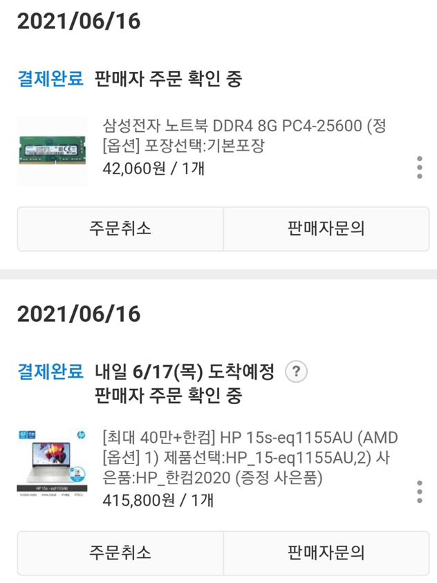 HP노트북의 보급형 모델은 거의다 비슷한데요.