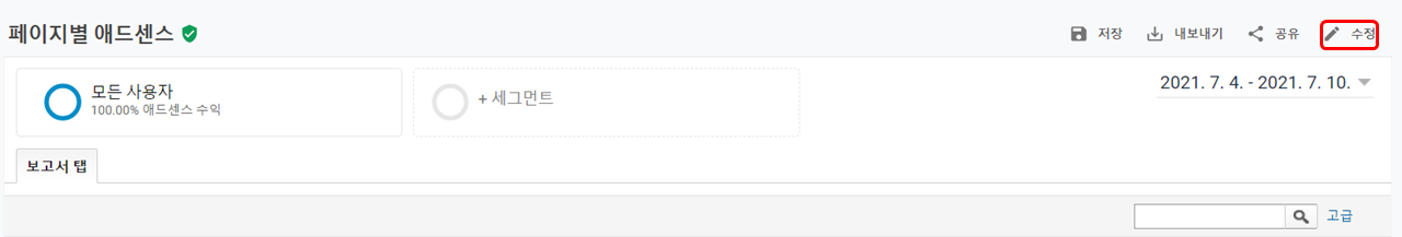 이렇게 설정하시면 페이지별로 애드센스 수익을 확인할수 있는데요.