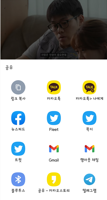 공유를 누르면 영상을 타인에게 공유할 수 있는데요.