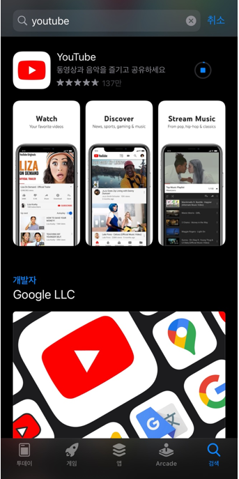 아이폰 역시 동일한데요. App 스토어에서 다운로드하시거나, 상단바에서 Youtube앱을 찾으셔서 실행하시면 됩니다.