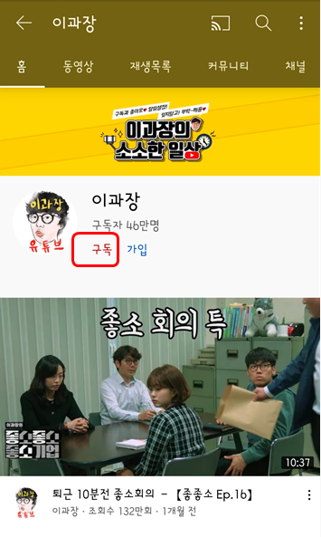 해당 유튜버를 구독하시면 나중에 구독 메뉴에서 모아서 볼 수 있습니다.