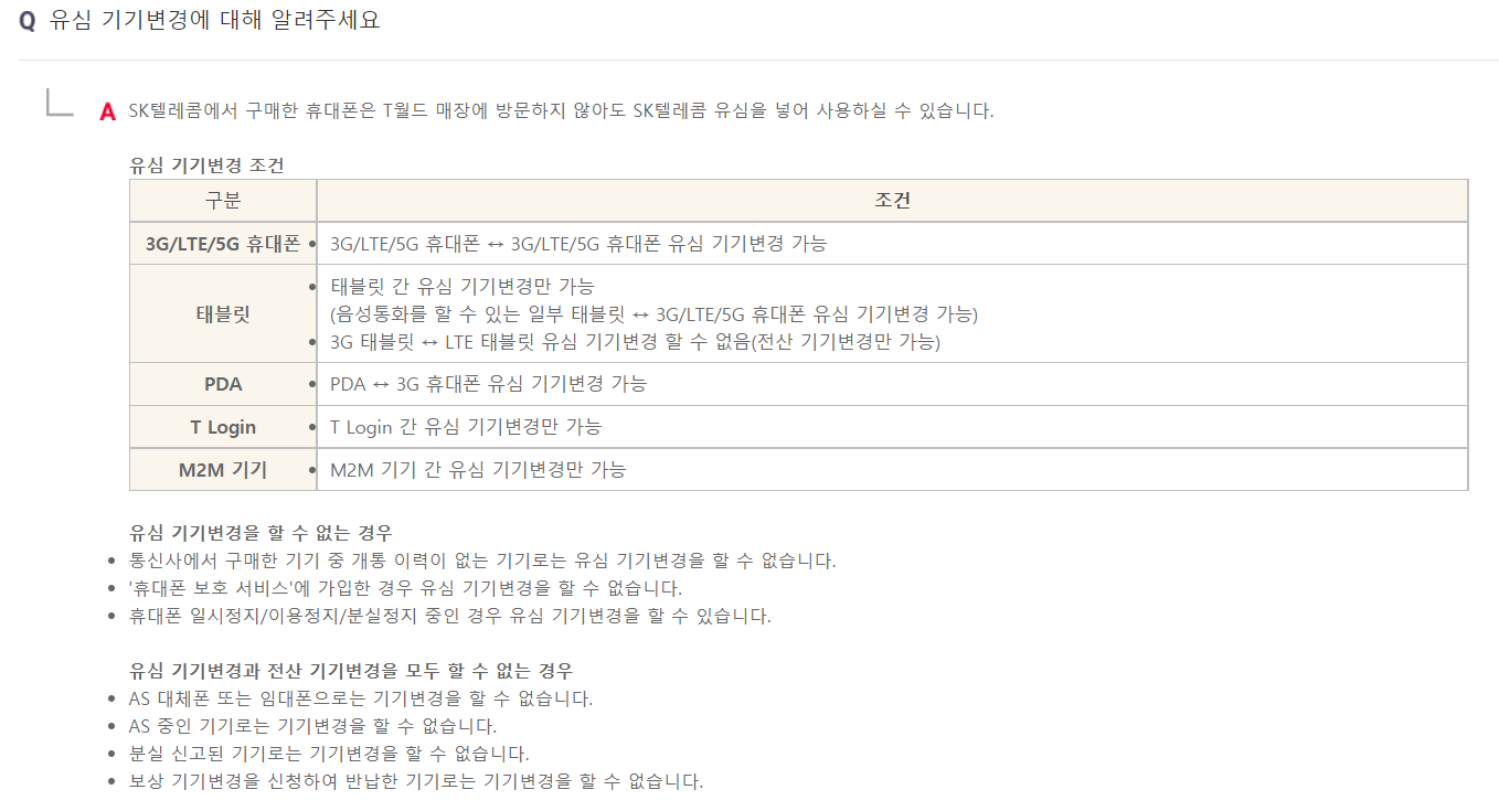 다만 유심 기변이 안 되는 경우는 통신사에서 구매한 기기 중 개통 이력이 없는 경우나, 휴대폰 보호서비스에 가입되어 있는 경우, 그리고 휴대폰 일시정지, 이용정지, 분실정지 중에는 유심 기기변경을 할 수 없습니다.