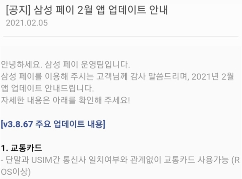 이제 삼성 페이도 원통신사와 유심이 다르더라도 사용할 수 있게 변경되었습니다.