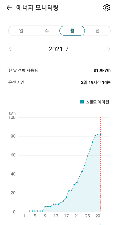 에어컨을 몇 시에 얼마 사용하였는지, 이번 달에 전기를 얼마 썼는지 등을 확인할 수 있는데요.