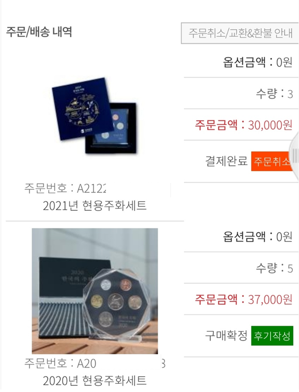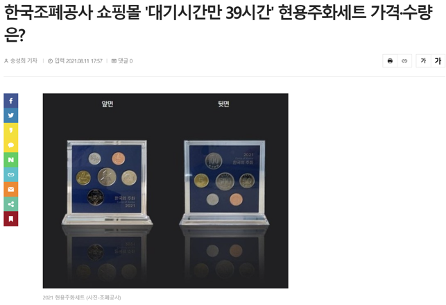 오늘은 한국 조폐공사에서 2021년 현용 주화세트를 판매합니다.