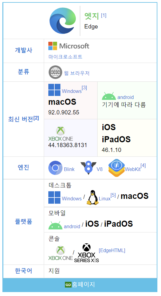 초창기에 엣지 브라우저는 독자개발한 엔진으로 인하여 호환성 문제가 많았으나,