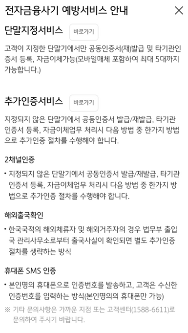 ID 패스워드 이외에 보안 수단을 두어 전자금융사기 등의 문제를 사전에 예방하는 방법입니다.