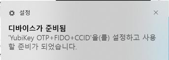 그리고 안내에 따라서 지문을 한번 터치해주시면 아래처럼 Yubikey가 설정이 됩니다.