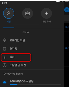 다만 기존에 원드라이브를 사용하셨다면 위 설정에서 계정이 여러개가 나올 수도 있습니다.