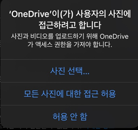 사진 백업을 하기 위해서는 Onedrive 앱에 사진 권한을 허용해주셔야 업로드가 가능합니다.